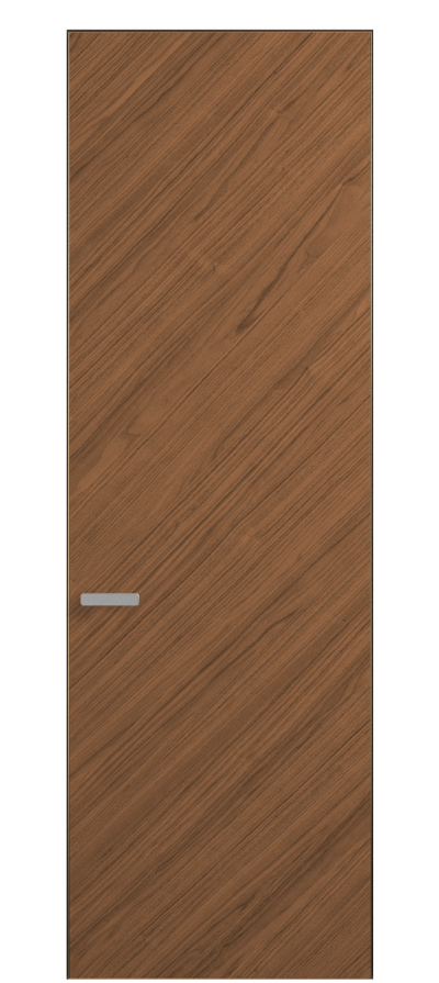 Полотно Рифт в скрытом алюминиевом коробе становится полноценным элементом декора. В коллекции представлено 9 моделей дверей в высоте до 3 метров. Рисунок раскладки шпона варьируется от простого до сложного. «Рубашка» для каждого полотна подбирается вручную по цвету, текстуре и фактуре.