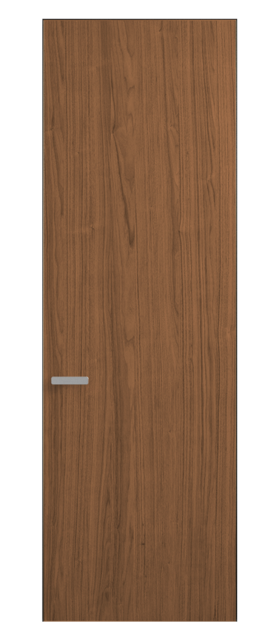 Полотно Рифт в скрытом алюминиевом коробе становится полноценным элементом декора. В коллекции представлено 9 моделей дверей в высоте до 3 метров. Рисунок раскладки шпона варьируется от простого до сложного. «Рубашка» для каждого полотна подбирается вручную по цвету, текстуре и фактуре.